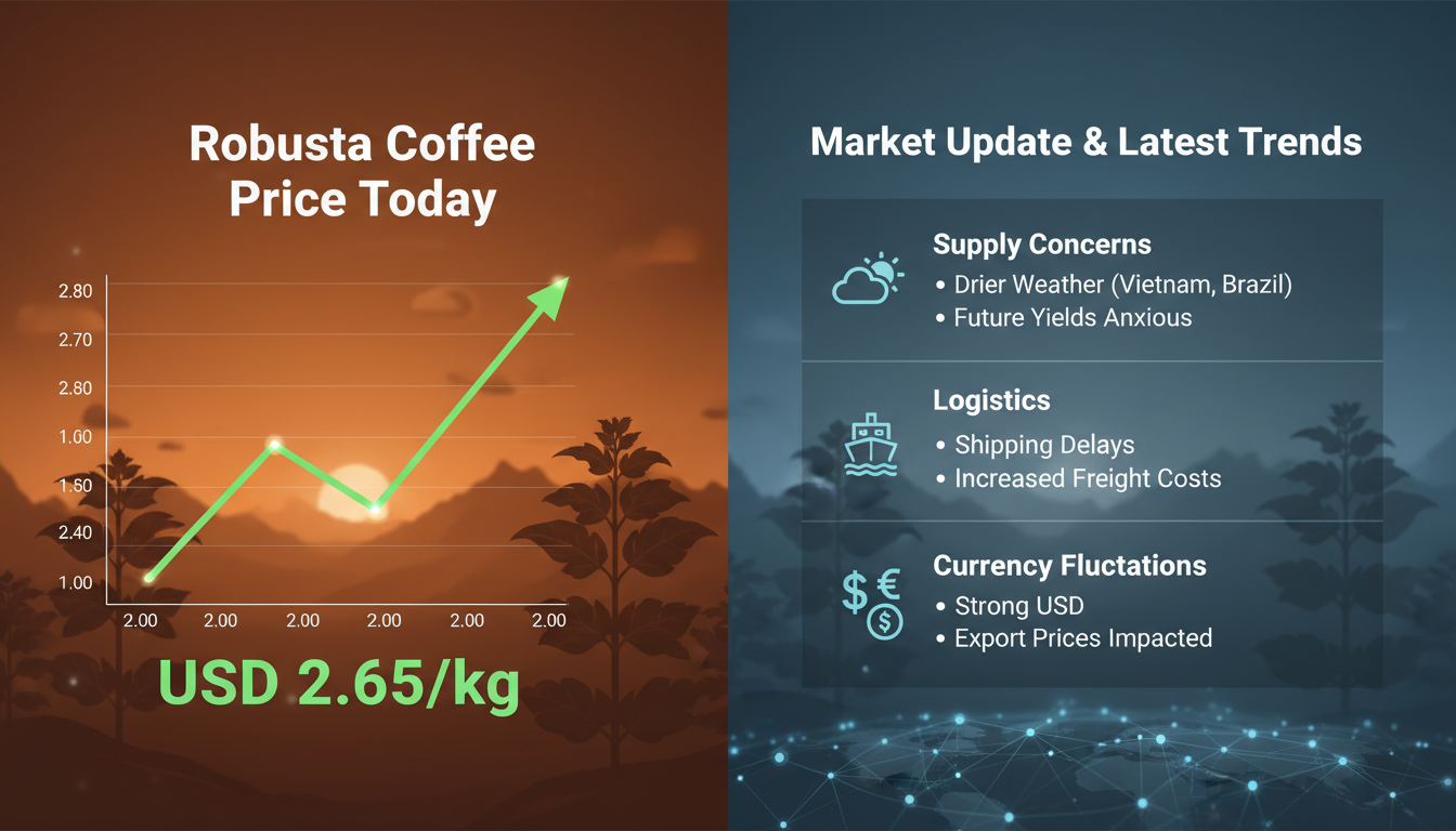 Robusta Coffee Price Chart: Trend Analysis & Market Insights Benjamin Brown February 12, 2026 The Robusta coffee price peaked in early 2025 and then eased into 2026, trading at around $4.24 per kilogram in Read More »
